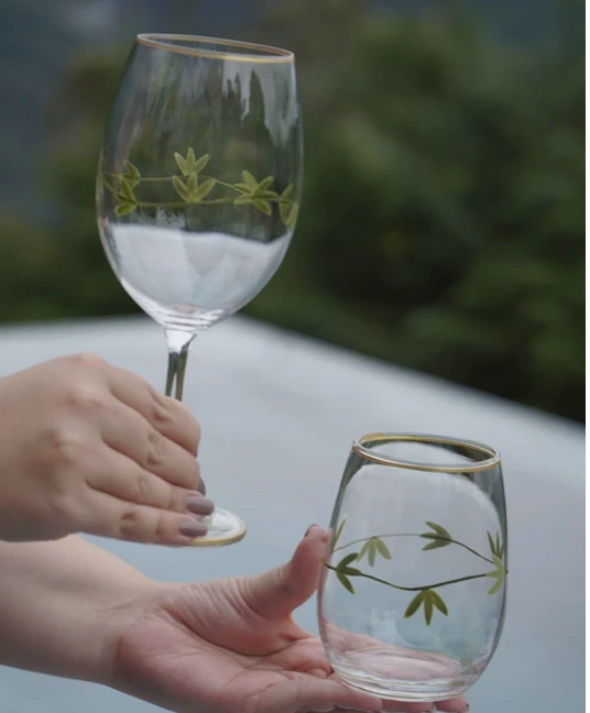 Aproveite o Copo Flora, confeccionado em vidro e meticulosamente pintado à mão. Adorne sua mesa com este toque artístico e sofisticado. Garanta já!