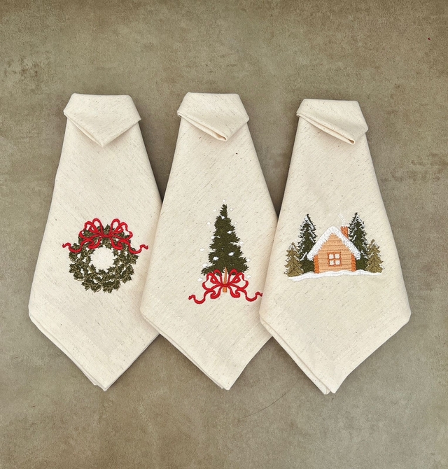 Guardanapo em linho cru bordado árvore de natal